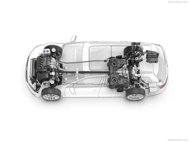 底盘方面,帕萨特B8使用了大众的横置模块化平台MQB,这个平台正在逐步代替大众的小型车平台PQ25,紧凑型车平台PQ35和中型车平台PQ46,通过调整不同的尺寸和悬挂形式来生成相应的车型。大众把所有横置发动机的平台整合在一次的目的主要还是节省成本,而对于消费者来说,和原来的平台相比,使用新的MQB平台之后实际感受不会有太大变化,不过新帕萨特的油门由PQ46时代的地板式油门变成了MQB时代的悬挂式油门算是一个退步,同样的情况还出现在高尔夫6到高尔夫7的进化过程中。