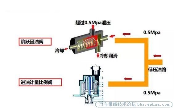 5、这时想到阶跃回油阀没有更换过,于是维修技师先调换阶跃回油阀处理,若故障还是存在,再考虑高压油泵和喷油器;