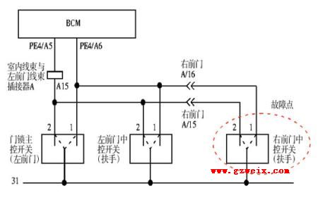 在更换右前门中控开关总成,故障彻底排除。