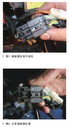 在实际使用过程中,一旦油门踏板位置传感器出现故障,故障症状表现为:发动机故障指示灯亮、加速无力和发动机限速。故障的原因主要为:传感器线路断路、传感器内部电阻有断点、 5 V电源供给电路与搭铁短路或不正确的安装。排除油门踏板位置传感器故障的第一步是用诊断仪读取故障码,确认故障点。通过故障码确认线路是否和搭铁线发生短路、断路;是否和电源短路、断路。油门踏板位置传感器故障代码有5个 ,分别为: P2122———电子油门踏板位置传感器1信号电路电压过低; P2123———电子油门踏板位置传感器1信号电路电压过高; P2127———电子油门踏板位置传感器2信号电路电压过低; P2128———电子油门踏板位置传感器2信号电路电压过高; P2138———电子油门踏板位置传感器信号不合理。