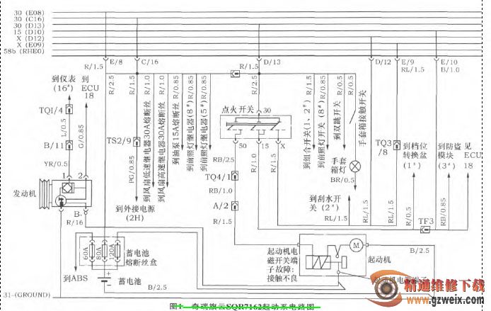 接车后,仔细询问了车主的维修情况,车主介绍曾换过蓄电池、发电机、检修过线路。由于该车只在冬天出现亏电情况,夏季正常,所以并不应是发电机故障,而蓄电池也更换过,不可能有问题。对于冬天亏电的故障,应主要从充电不足和放电严重考虑。首先断掉蓄电池正极连线,串联一块电流表,然后关闭所有用电器,此时放电电流将近1A,这样的静态放电电流严重超出规定范围,正常电喷车型放电电流应在25~60mA左右。此车放电电流说明该车有严重放电现象,于是检查维修。首先断掉了加装音响的电源,电流没有明显下降。根据经验应对原车常供电设备重点检查,检查杂物箱灯和后备箱照明灯,发现后备箱照明灯开关已被箱盖压碎,致使后备箱灯常亮造成放电。于是拆除了该照明灯,此时放电电流在350mA左右。原想故障已顺利排除,就以此交车了。但次日早晨车主打电话救援,虽然放电现象有所缓解,但启动时曲轴转动一两圈就又没电了,电量仍然不足。看来,350mA的放电电流也有些超出范围,要把这个放电部位找出来,故障才能真正排除。现在只有一个办法,就是逐一拔掉所有保险丝,同时观察放电电流的变化情况。打开转向盘下方护罩,发现保险丝盒和捷达车的一样,关闭了点火开关后逐一断电,在断掉21号保险丝时,放电电流马上下降到30mA左右。根据电路图得知,该保险丝控制电子时钟和室内灯,但两者放电电流不至于达到如此大,问题绝非在此。在插拔保险丝时,听到发动舱内有“嗒,嗒”声,仔细判断确定为主继电器,问题基本可以确定。由于主继电器吸合使EFI系统工作,放电电流过大。对于这样的状况,实在不知如何修理。只好将21号保险丝切断,由17号保险丝对21号保险丝下的电器供电,改为由钥匙门供电控制。虽然时钟不能正常使用,但放电问题可以完全解决。修到最后也没能完全搞清最终原因,但在维修中发现该车原为化油器发动机,现在的电控系统是后改装的,在改装过程中元件的型号不匹配,尤其是保险丝盒、仪表、电喷线束都可能存在问题。只是夏天蓄电池本身放电少,电量勉强能启动发动机,冬天由于气温低,蓄电池的电能转化效率低,加之放电造成严重亏电,我想就是这个原因吧!