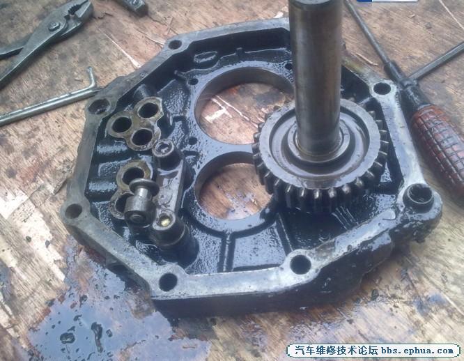 装好发动,异响没有了,但是顶筒的声音有点响,现在想想也不知道当时是不是心理作用,我让一个学徒来听,他也说好像声音大了点,我决定再拆下来看看,索性把那个间隙用一个销子把曲轴盘固定,再装好试车,顶筒的声音是好了很多呢