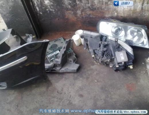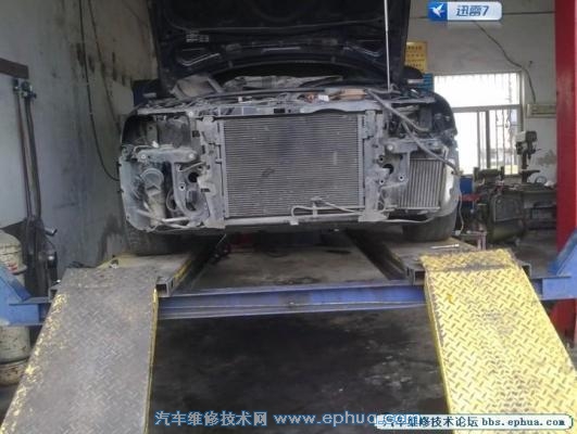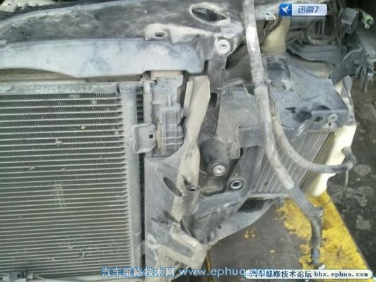 车一开到厂里就听到车头部位有严重的噪声,车主叫我过去听有什么异响 发现打空调声音就出来了 再一听 是风扇发出的声音 更换风扇拆了前保 大灯