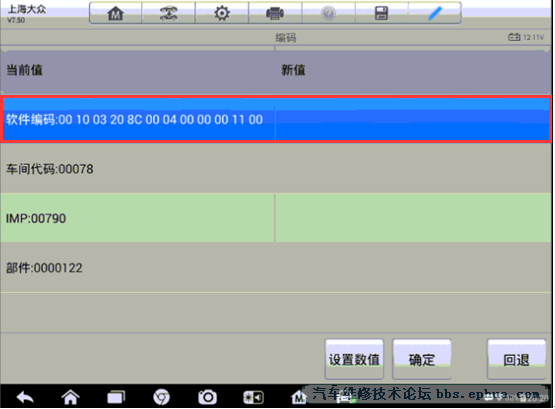 5. 进入编码后请先记住原车编码,选长编码后,点击“设置数值”