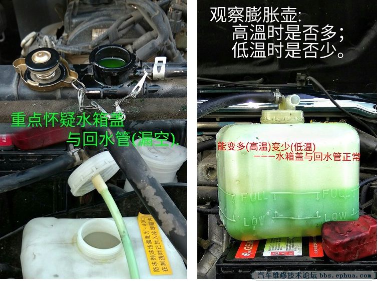 诊修猎豹(三菱吉普)冷却水慢慢变少
