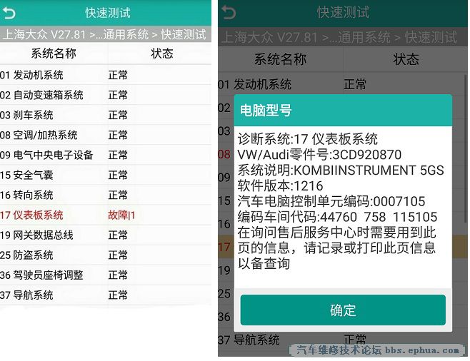 操作步骤: 1、连接道通诊断仪,选择正确车型 2、进入控制单元,选择“底盘” 3、选择“EPB-电子驻车制动” 4、选择“多功能” 5、选择“维修程序” 6、点击“确定” 7、选择“维护关闭”,点击“确定”