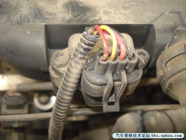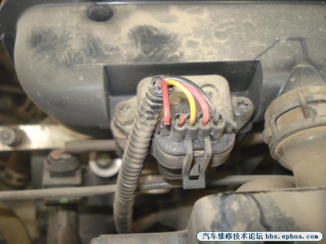 根据P006C,P0107这两个清除不掉的DTC,本人先检查其线路。在打开发动机上护罩检查进气屹管上的TMAP线路时找到故障点。如图: