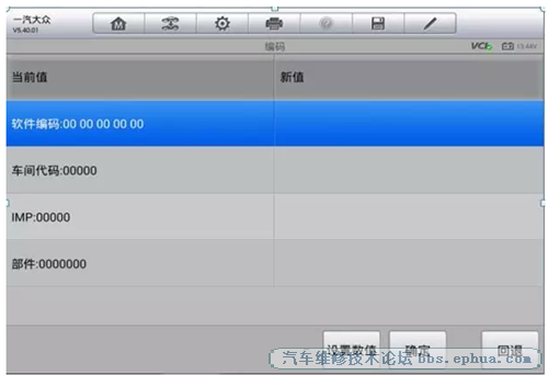 图7 新的空调面板,内部没有编码,需要用诊断电脑修改编码,MS906BT可以修改模块编码,通过(上图7)设置数值,将新模块编码改为和旧模块一样的编码。修改完之后,故障码可以清除,启动车辆,打开空调,空调恢复正常,故障排除。 总结 在整个维修过程中,没有明确的故障代码时,我们要懂得分析数据流,换一种思维去诊断问题,在这个故障处理中,不仅要求诊断电脑能有精确的数据显示,还要能对控制模块进行编码匹配。在这个故障维修过程中,也反应了MS906BT 强大的检测和匹配功能。