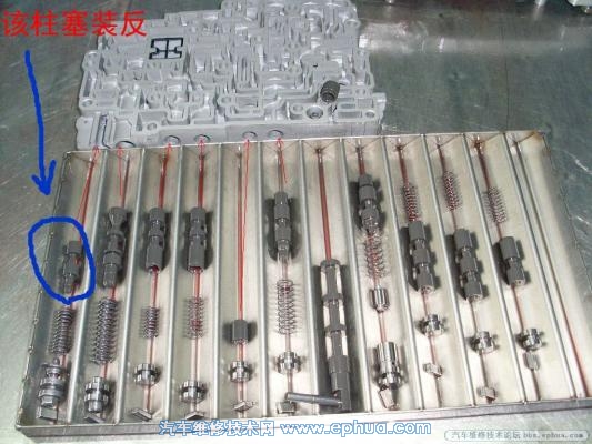 从简到繁,先拆下油路板。对照资料测量8个电磁阀,阻值都在标准范围。仔细拆解油路板,最终发现如下图装配错误。