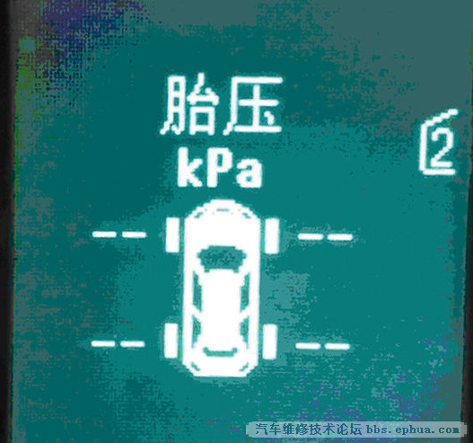 导致4个轮胎气压值都不显示,故障原因一般是蓄电池被断开过,解决方法是车辆行驶(车速大于20km/h)20min后即可恢复。