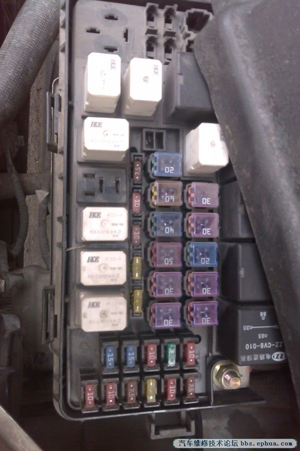 看盒子上标明,IGN/ECCS CONT 点火开关/电控系统保险丝