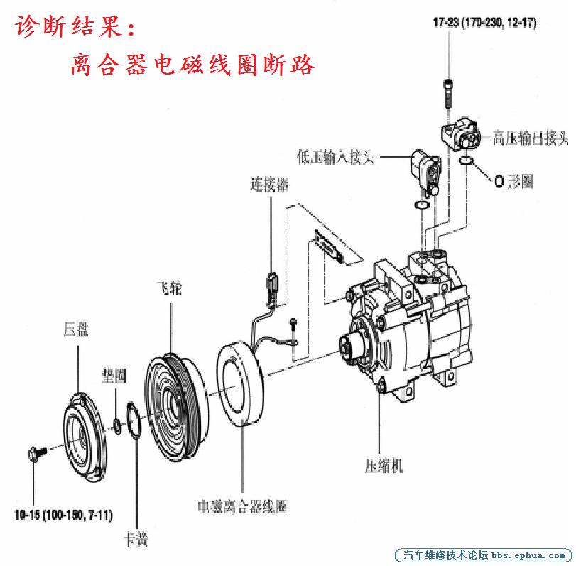 有风,发动机能提速,目测压缩机不挂机。装表 测其管道系统有压力。
