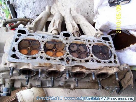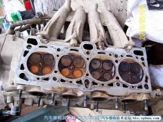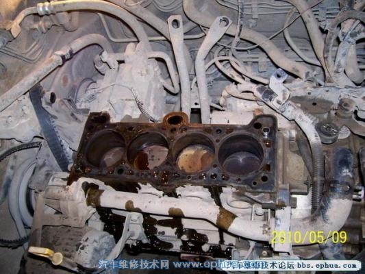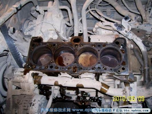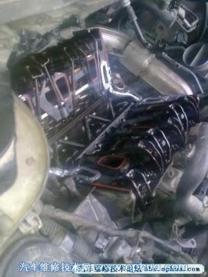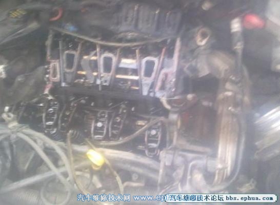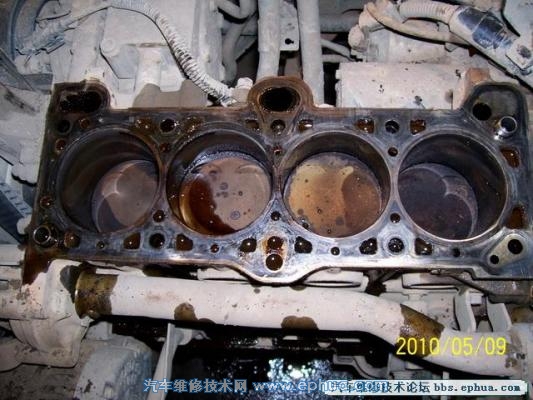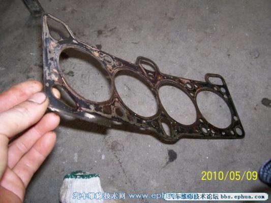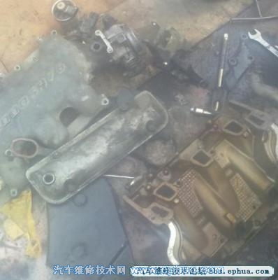 拆下发动机出水管。用毛巾堵住。用手堵住水箱盖。从排气管吹气。发现水道畅通。于是决定抬下缸盖。抬下缸盖并没有发现很明显的冲床。车子有点老。保险起见决定把水泵也换掉。
