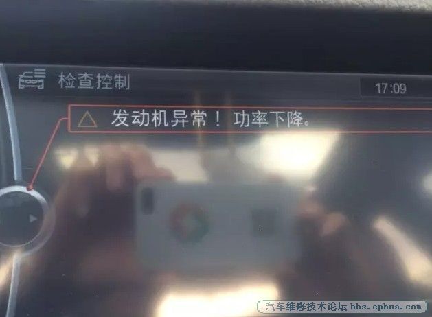故障现象:发动机出现异常噪声。发动机动力下降。发动机故障灯亮起。