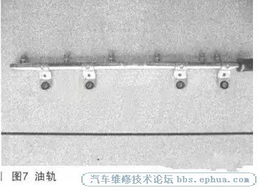 故障排除:松开车头方向的第一颗固定螺栓(汽缸盖上的高压油轨),噪音不再出现。安装新的带有去藕元件的高压油轨,插图参见图7。
