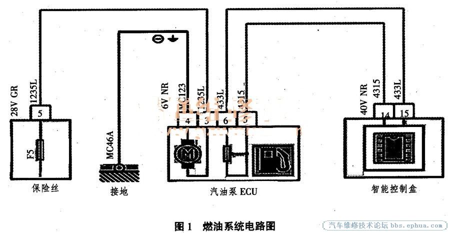 由于保险盒上28V/MR连接器和燃油泵28V/GR连接器相邻,随着行驶里程的增加,雨刮器洗涤泵中的水渗漏到保险盒中,慢慢腐蚀保险盒一侧线路插接器的针脚,水渗漏到保险盒中的R2继电器,这R2继电器又是控制燃油泵的,如果R2继电器内部腐蚀短路,就不能向燃油泵供电;而R1继电器正好是发动机控制单元控制主继电器指令的,继电器R1和R2又是同时工作的,由于保险盒(PSF1)与发动机控制单元(1320)是通过1229号线连接在一起的,这样就出现车辆在行驶中熄火,而再也不能起动的故障。因此,更换保险盒和雨刮器洗涤泵后试车,故障现象消失。